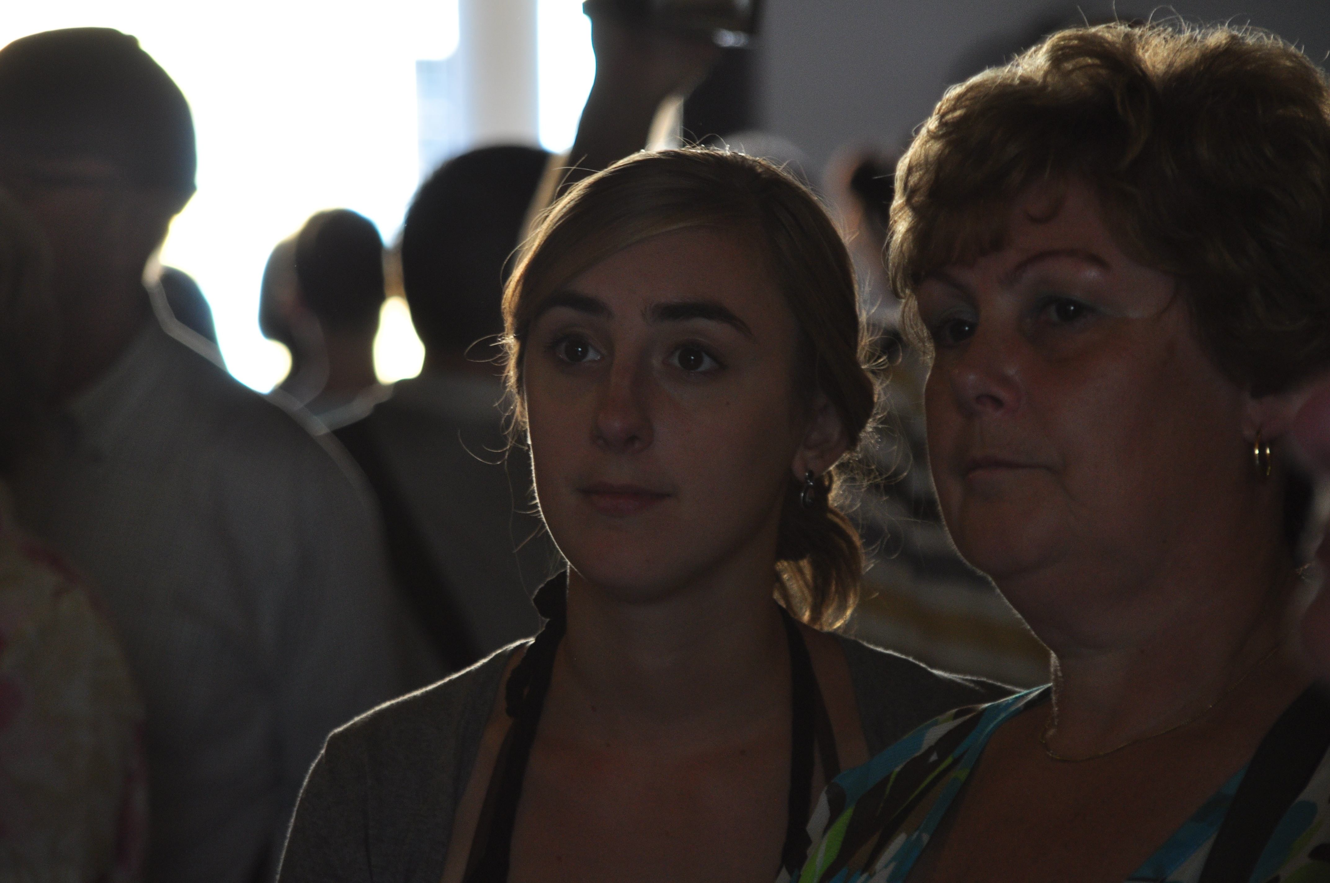 Moeder en dochter luisteren naar gids