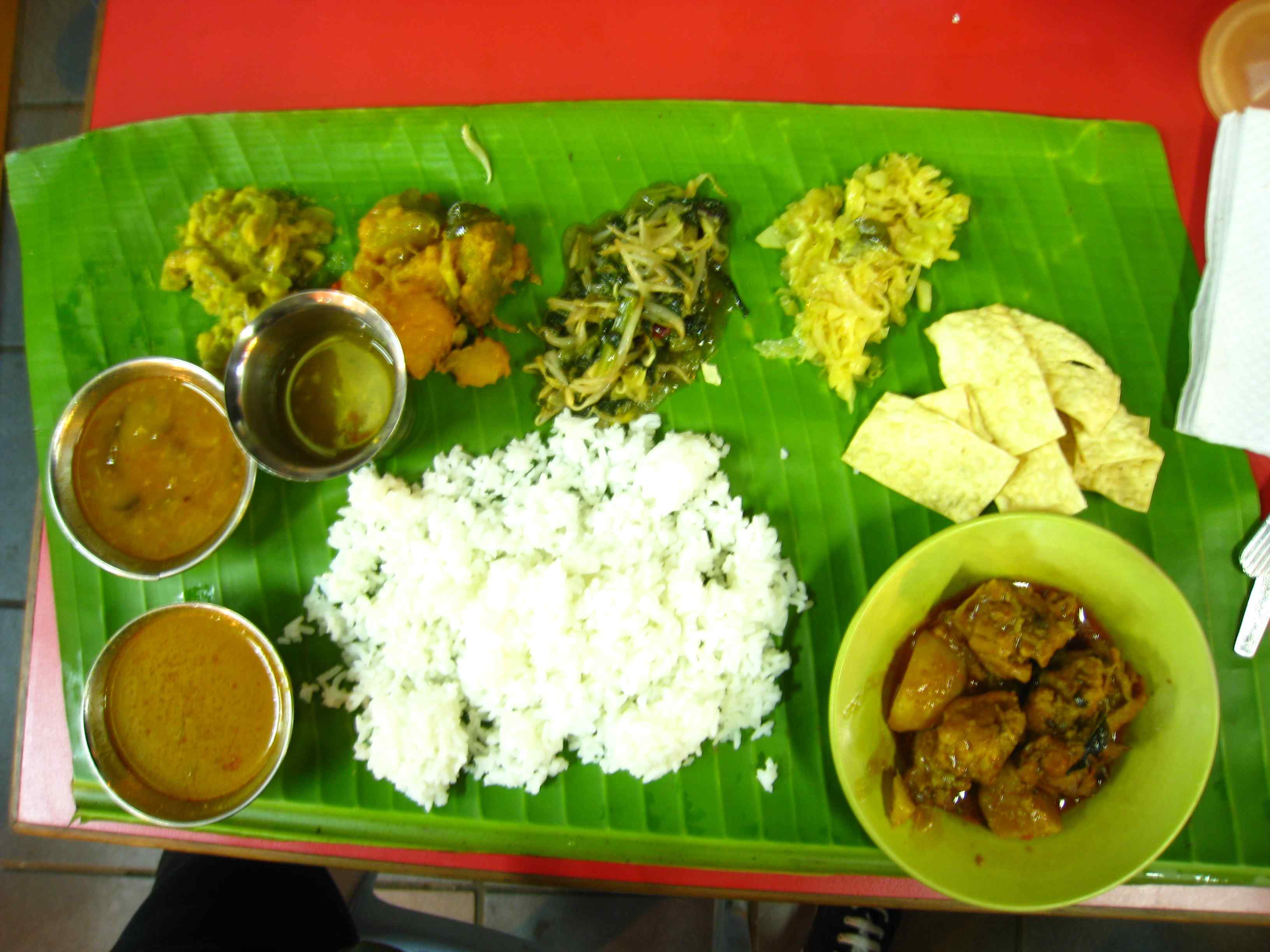 Heerlijk Indiaas eten van een bananenblad