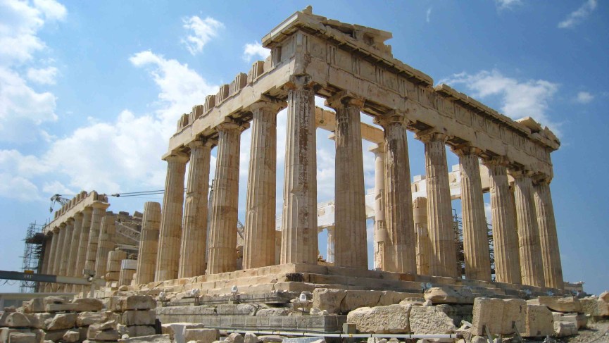 De volgende dag hebben we heel veel gelopen en daardoor heel veel van de stad kunnen zien. In het zonnetje is de sfeer van de stad veel gezelliger, maar het was eigenlijk té warm. Nu kan ik heel goed tegen hitte, maar na een dag in de brandende zon van 37 graden zonder schaduw te hebben gelopen, had ik het helemaal gehad. Maar goed, als je een bezoekje brengt aan Athene en Zeus, moet je natuurlijk wel iets offeren. We hebben vooral alle highlights van het oude Griekenland bezocht, zoals alle opgravingen op de Akropolis, met o.a. het Parthenon, de tempel van Poseidon, de tempel van Athene en het theater van Dionysos, het Akropolis museum, de tempel van Zeus, de boog en bibliotheek van Hadrianus en de Romeinse agora. Verder hebben we ook de vlees- en vismarkt gezien (vies!), het Syntagma plein met het parlementsgebouw, de nationale tuinen, het Olympisch stadion waar voor het eerst de Olympische spelen zijn gehouden in 1896, de eerste Atheense universiteit en nog wat kerkjes. ’s Avonds hebben we nog een beetje gewandeld door het centrum in Plaka en Monastiraki.