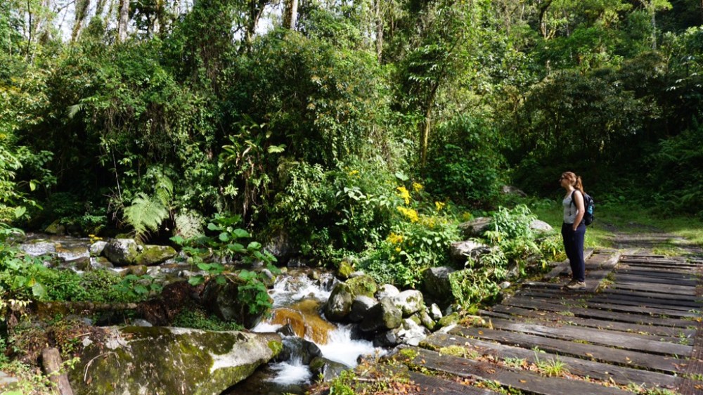 De eerste dag samen met Celien ’s ochtends vroeg opgestaan om de Sendero de los Quetzales te doen: een hike waarbij je de mooie Zuid-Amerikaanse vogel de quetzal zou kunnen spotten. De hike gaat dwars door het nationaal park van de vulkaan Barú, van Boquete naar Cerro Punta. We wilden heel graag met een gids gaan, om iedereen in Nederland gerust te stellen maar ook omdat een gids natuurlijk veel makkelijker de quetzal voor je kan spotten. Echter toen we bij de entree van het park aankwamen, bleek dat je daar geen gids kunt huren. Omdat we geen zin hadden om helemaal terug te moeten naar Boquete town, besloten we de hike dan toch maar met z’n tweeën zonder gids te doen.
