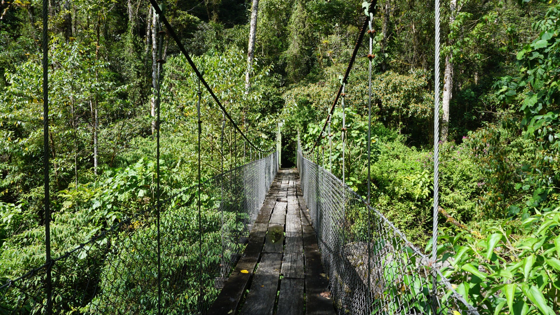 We hebben echt heel vaak aan Kris en Lisanne gedacht. Ook al hebben zij een andere trail gelopen dan wij, je kunt je helemaal voorstellen hoe het gegaan is. Ook bij ons pad was het regelmatig superglad en loop je langs diepe dichtbegroeide afgronden. Even niet opletten of een gekke beweging maken vanwege een of ander groot insect en het kan misgaan. Niet dat het per se een levensgevaarlijk pad is, maar in de jungle zit een ongeluk nou eenmaal in een klein hoekje. Ook hield ons pad ineens op en leek het alleen aan de overkant van de rivier verder te gaan. Instinctief denk je dan: “dan zullen we wel de rivier moeten oversteken”, maar voor hetzelfde geld denk je dat je rechtdoor moet en ga je de diepe jungle in en ben je verdwaald.