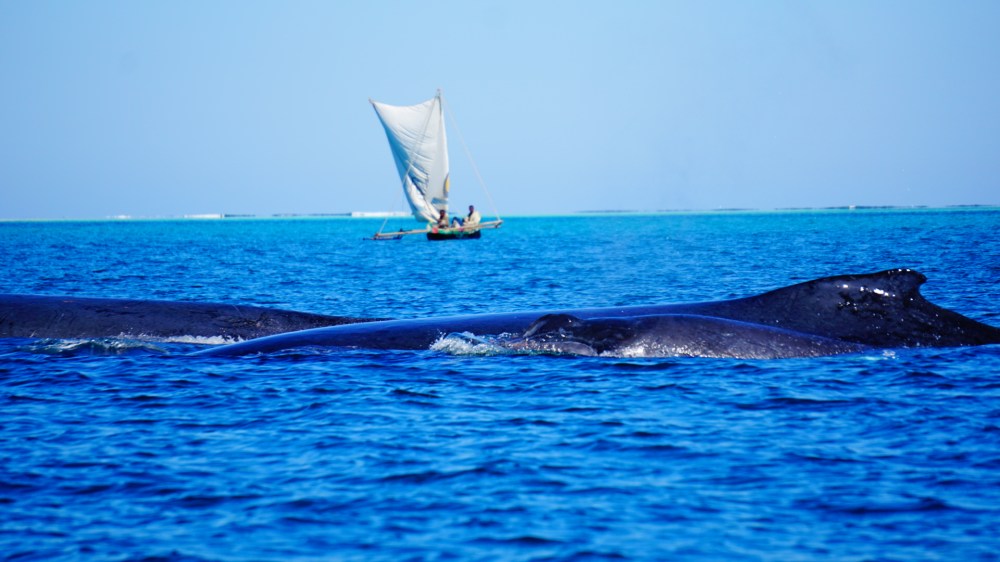 De volgende dag gaan we samen met 2 Malagissche jongens met een traditionele pirogue het kanaal van Mozambique op. Op zoek naar walvissen. Na een tijdje spotten we een vader, moeder en baby walvis. Zo magisch! We volgen ze een tijdje op gepaste afstand (10 meter ofzo) en staren uren naar die vin die zo af en toe bovenkomt. We hopen 2 uur lang een picture perfect van de staartvin te maken, maar helaas, na 2 uur lang zit ie nog steeds onder water. Maar prachtig om te zien hoe de walvissen zich tussen alle kleine vissersbootjes voortbewegen!