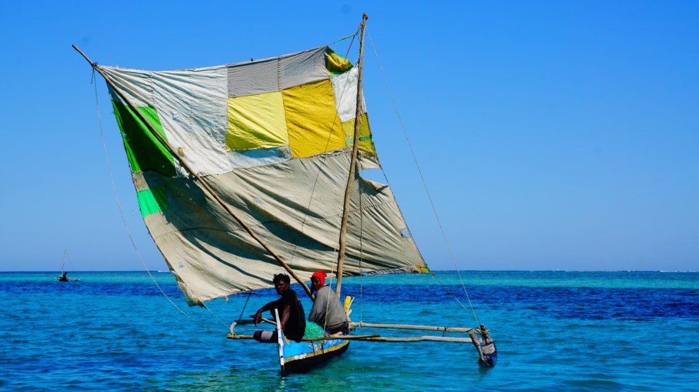 Tijdens het varen worden we ineens getrakteerd op een walvis die een stuk verderop zijn vin laat zien. Wow! Van juni tot september is het walvisseizoen en laten ze zich in de wateren rondom Madagaskar zien. Zo leuk! Na ongeveer 1,5 uur varen komen we aan in Anakao, wat niet meer dan een langgerekt wit zandstrand is met hier en daar wat accomodaties.