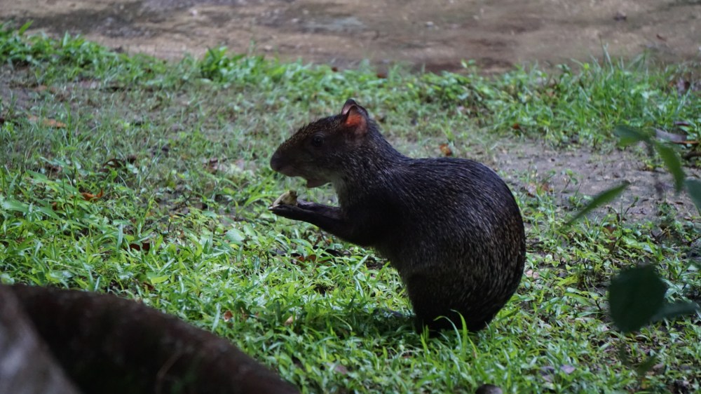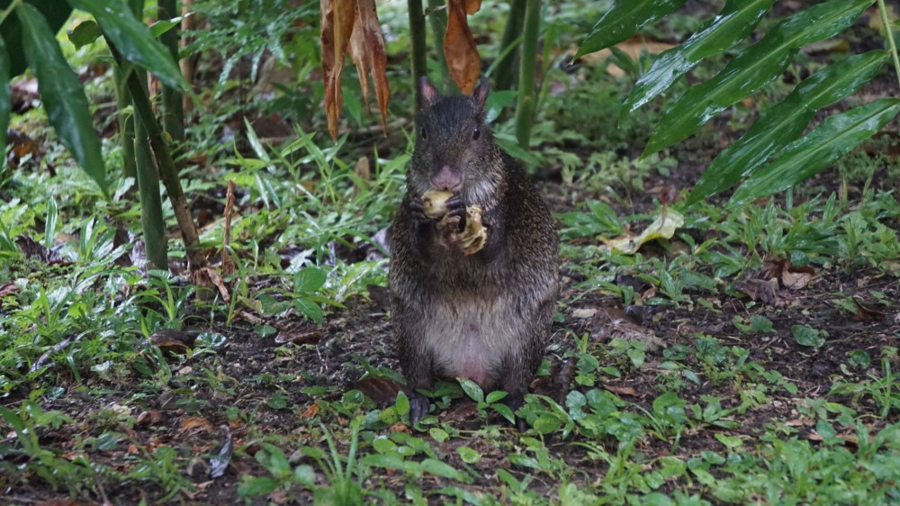 Vanaf het busstation in Palenque neem ik een taxi naar een klein paradijsje: een hutje in het regenwoud. Omdat het nog zo vroeg is, kan ik nog niet inchecken. Ik besluit een lange, warme douche te nemen bij het toiletgebouwtje en geniet van alle jungle geluiden om me heen. Door de regen worden de brulapen wakker en het geluid is oorverdovend. Wow, ik voel me echt Jane in de jungle! Als ik uit de douche stap, word ik vergezeld door twee agoeti’s. Ik moest eerlijk gezegd even googlen wat voor een dieren het waren. Nog nooit van een agoeti gehoord. Het is een soort grote muis die het met een eekhoorn deed en capibara ouders heeft.