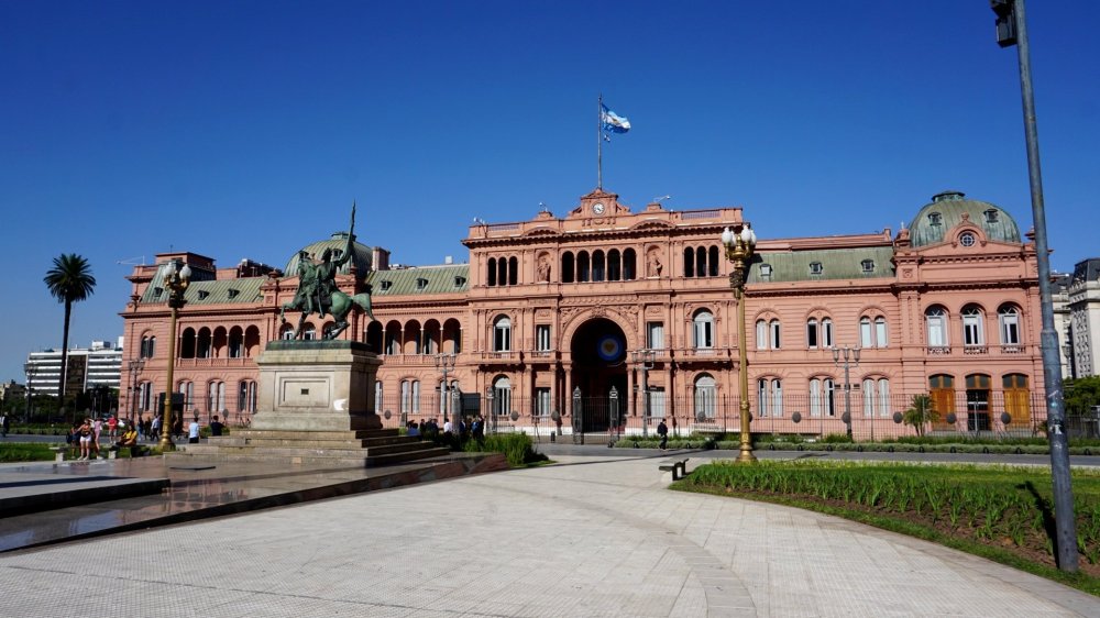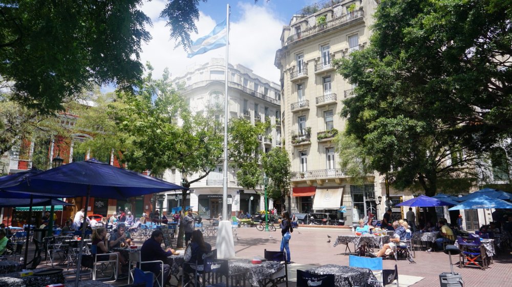 Ik vervolg m’n weg naar de shoppingstreets Calle Lavalle en Florida, waar ik om de 5 meter casa de cambio hoor, ofwel wisselkantoor. Het zijn louche figuren, en ik vraag me af wat ze eigenlijk precies willen wisselen. Later hoor ik dat 40% van de Argentijnse economie zwart is. Het grootste briefje is 1000 pesos (ca. 15 euro). Het centrum voelt overdag redelijk veilig op elke hoek van de straat politie met kogelvrije vesten, maar ik kan me voorstellen dat je hier downtown na 20.00u niet meer wilt rondlopen. Ik zie relatief weinig bedelaars voor zo’n grote stad, maar genoeg mensen op een matrasje in de parken. Ik loop snel door naar Plaza de mayo. Aan het plein staat de kathedraal, het huis van paus Bergoglio. Toevallig heb ik in het vliegtuig de film Two Popes gekeken, waar Bergoglio er één van is.