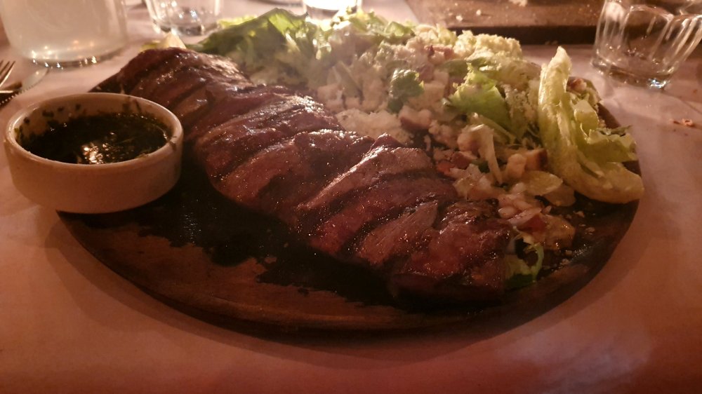 De volgende dag wil ik ’s ochtends een fietstocht doen door de andere wijken, maar het blijkt vol. Er wordt me aangeraden ’s middags bij een andere fietstour aan te sluiten, dus vertrek ik ’s middags weer naar de andere kant van de stad naar het meeting point. Wederom niemand te vinden. Ik wacht een half uur, check het bij het lokale VVV, maar zij weten het ook niet. Ze horen er te zijn. Pff, tweede keer. Nou ja, dan maar m’n tijd gebruiken voor het maken van een plan voor komende week. ’s Avonds volg ik met m’n nieuwe hostelvrienden uit NL, Engeland en Duitsland bij ondergaande zon een yogales op het dakterras. Na de les gaan we samen eten en ik eet een heerlijke Argentijnse steak met chimichurri, maar had ‘m ook met z’n drieën kunnen delen. Het is bijna een hele koe! De Argentijnse wijn delen we wel. Na het eten kijken we nog even bij een milonga in de buurt waar een paar koppels de tango aan het oefenen zijn. Wat een heerlijke stad en wat een heerlijke cultuur. Ik heb dat niet snel op reis, maar in Buenos Aires zou ik best willen wonen!