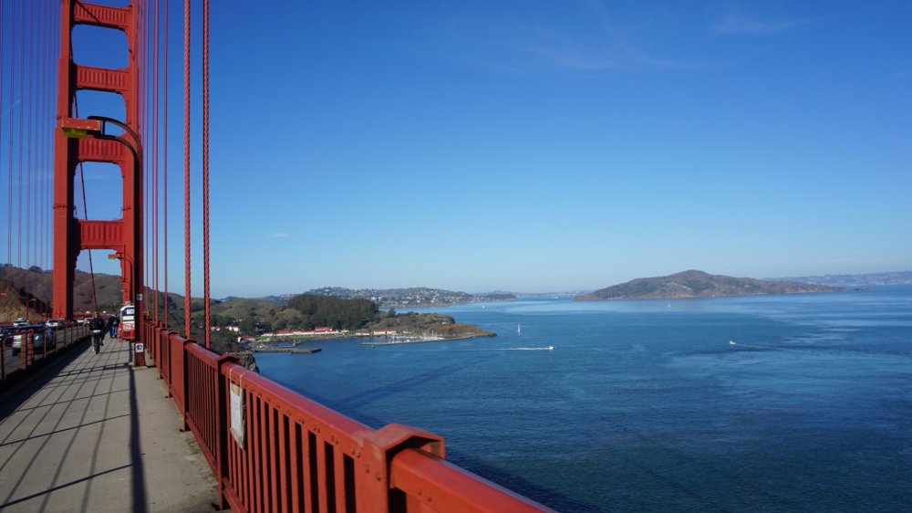 De volgende dag zijn we vanwege de jetlag van 9 uur tijdverschil al om 7.00u op. In tegenstelling tot gisteren schijnt de zon en is de lucht strakblauw. We huren een fiets en gaan op pad om de stad te verkennen. We beginnen downtown op Union Square en fietsen over de Market Street tussen de hoge gebouwen en krijgen een echt New York gevoel. Gelukkig heeft het zo hier en daar tussen de auto’s wel een fietspad, waardoor je er redelijk veilig kunt fietsen. SF ligt gedeeltelijk op een heuvel, dus fietsen we verder uphill naar de Painted ladies, een rijtje gekleurde huizen die de Victoriaanse bouwstijl kenmerken en bekend zijn geworden van series als Full House. De huizen staan aan het Alamo Square Park, vanwaar je rondom uitzicht hebt op de stad. We fietsen weer naar beneden naar het Golden Gate Park. Een supergroot mooi aangelegd park, met o.a. een botanische tuin, Japans theehuis, musea, amfitheater, sportvelden etc. We gaan bij de uitkijktoren omhoog en hebben een prachtig uitzicht over de hele stad. We fietsen weer verder, een flink stuk klimmen, maar bovenaan worden we beloond met een fantastisch uitzicht op de oceaan en – daar kwamen we voor – de iconische rode brug: de Golden Gate Bridge. Wow, wat een enorme constructie! Nog indrukwekkender dan de Brooklyn Bridge in NYC! We fietsen en wandelen er overheen, er lijkt geen eind aan te komen. Eenmaal aan de overkant fietsen we via een lange weg naar beneden en komen we uit in Sausalito, een schattig stadje aan de andere kant van the bay. Elk huis is er anders, van hypermoderne vierkante betonblokken tot schattige authentieke poppenhuisjes. Aan het eind van de dag nemen we de ferry weer terug naar SF, bij een ondergaande oranje en roze zon achter de Golden Gate Bridge. Such a perfect day! Via de grootste Chinatown van de wereld – buiten Azië dan – fietsen we weer terug naar ons hostel en leveren we de fiets weer in.