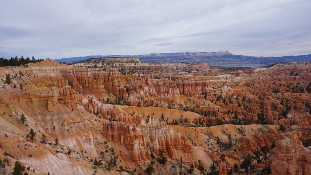 We zouden vanuit Page eigenlijk doorrijden naar Las Vegas, maar kunnen nog geen genoeg krijgen van alle mooie natuurfenomenen die deze regio rijk is. Dus besluiten we om met onze America the beautiful pass waarmee we toch gratis alle nationale parken in kunnen een ommetje (lees: 3 uur) te rijden om zo nog een park te bezoeken: Bryce Canyon NP. Een prachtig ommetje, waarbij we vanuit het oranje landschap van Arizona weer een grens over gaan naar een nieuwe staat Utah dat meer wit en gele tinten en hoge rotsachtige bergen laat zien.