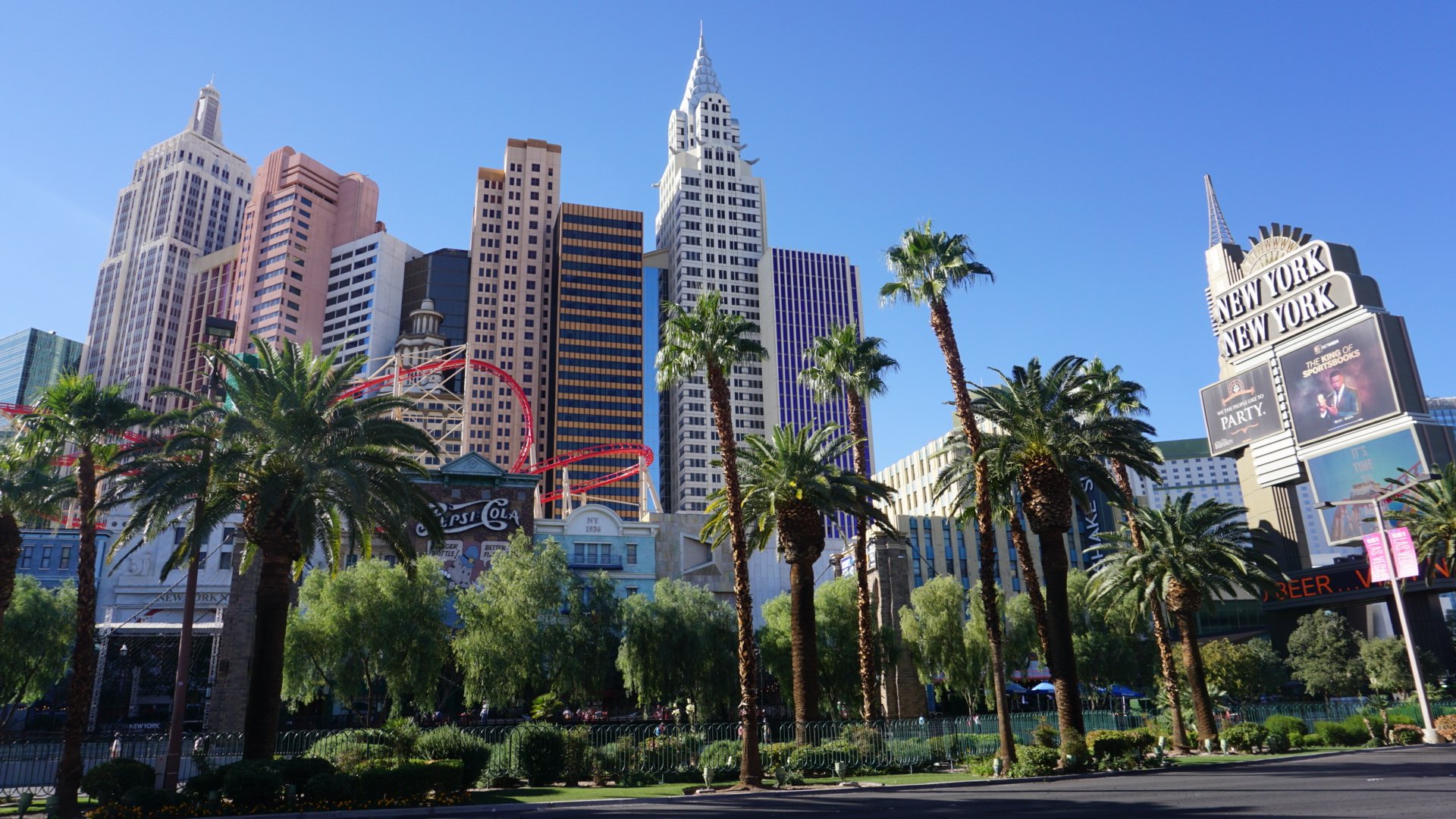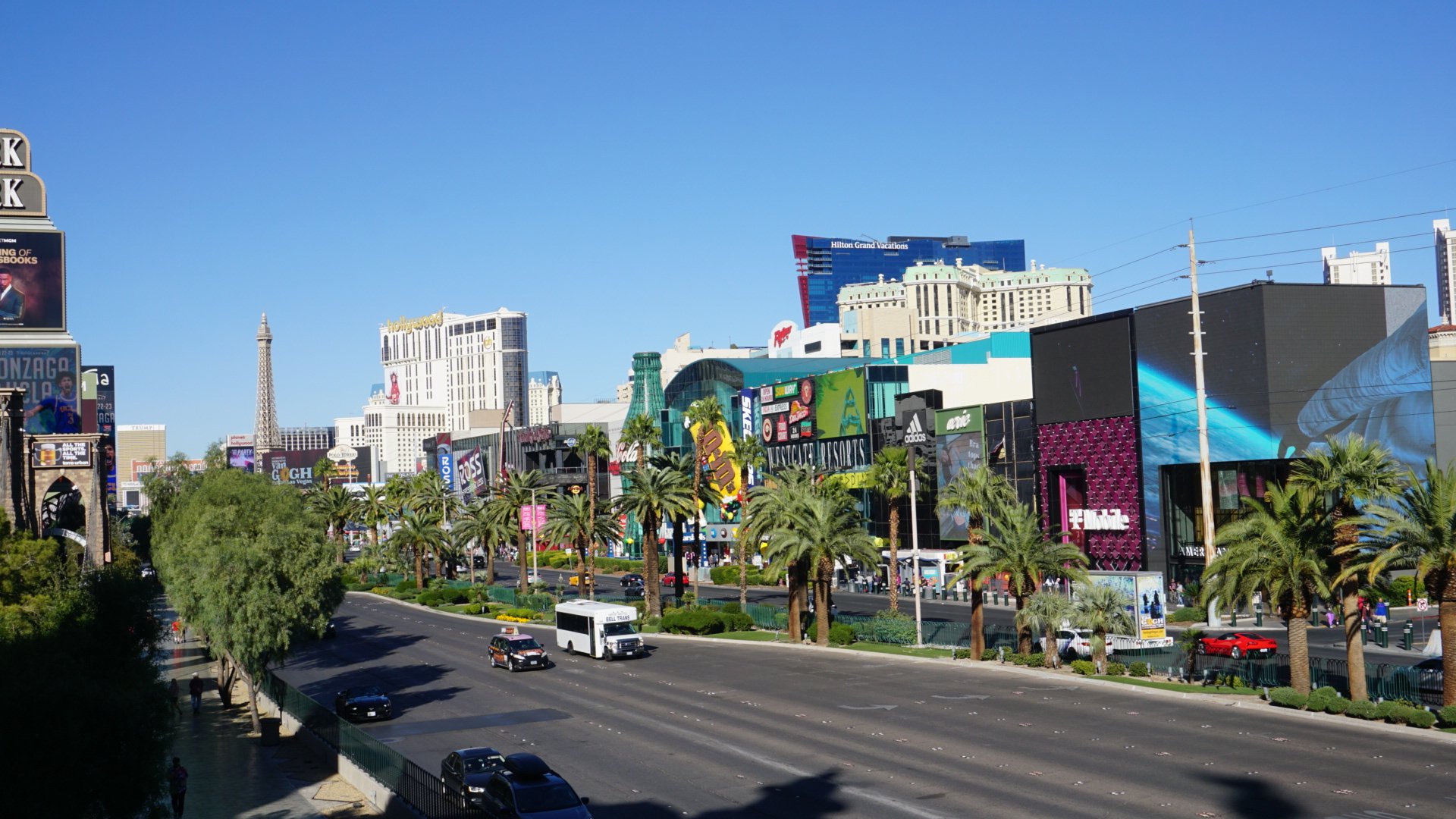We rijden recht het hart van de stad in over de Las Vegas Boulevard, beter bekend als the strip. Een bijna 7 km lange straat vol met neonverlichte hotels, casino’s, winkels en bars. De éen nog grootser, mooier, gekker, vreemder of bonter dan de andere.