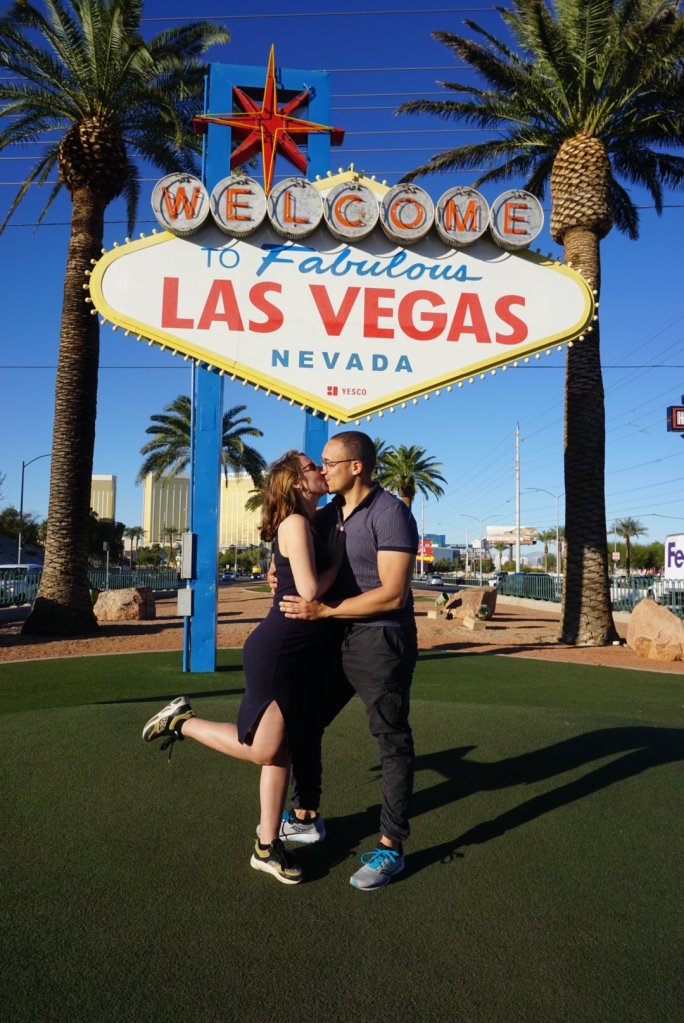 We lopen de strip helemaal af, naar het bekende Welcome to fabulous Las Vegas bord, waar we, ondanks dat het laagseizoen is, in de rij moeten staan om ermee op de foto te gaan!