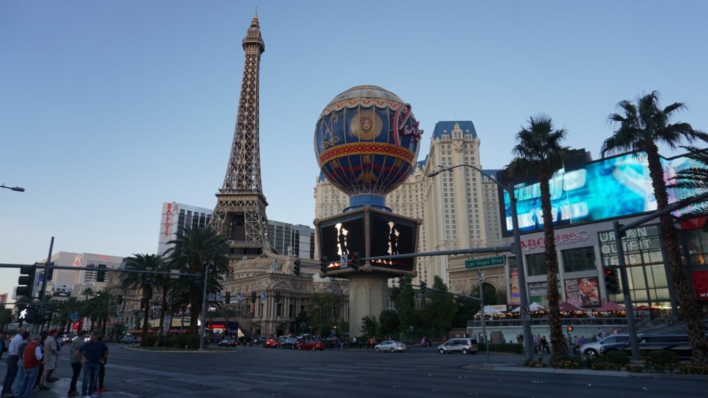 We slapen in één van Vegas’ bekendste themahotels midden op the strip: het Paris Las Vegas, waarin alles in het thema staat van, je raadt het al, Parijs. De buitenkant kenmerkt zich door een heuse Eiffeltoren, die de helft van de hoogte van het origineel is, een enorme blauwe luchtballon en een Arc de triomphe. De binnenkant kent een eindeloze winkelstraat met een boulangerie, creperie en wijnbar en receptie met kroonluchters van Franse grandeur.