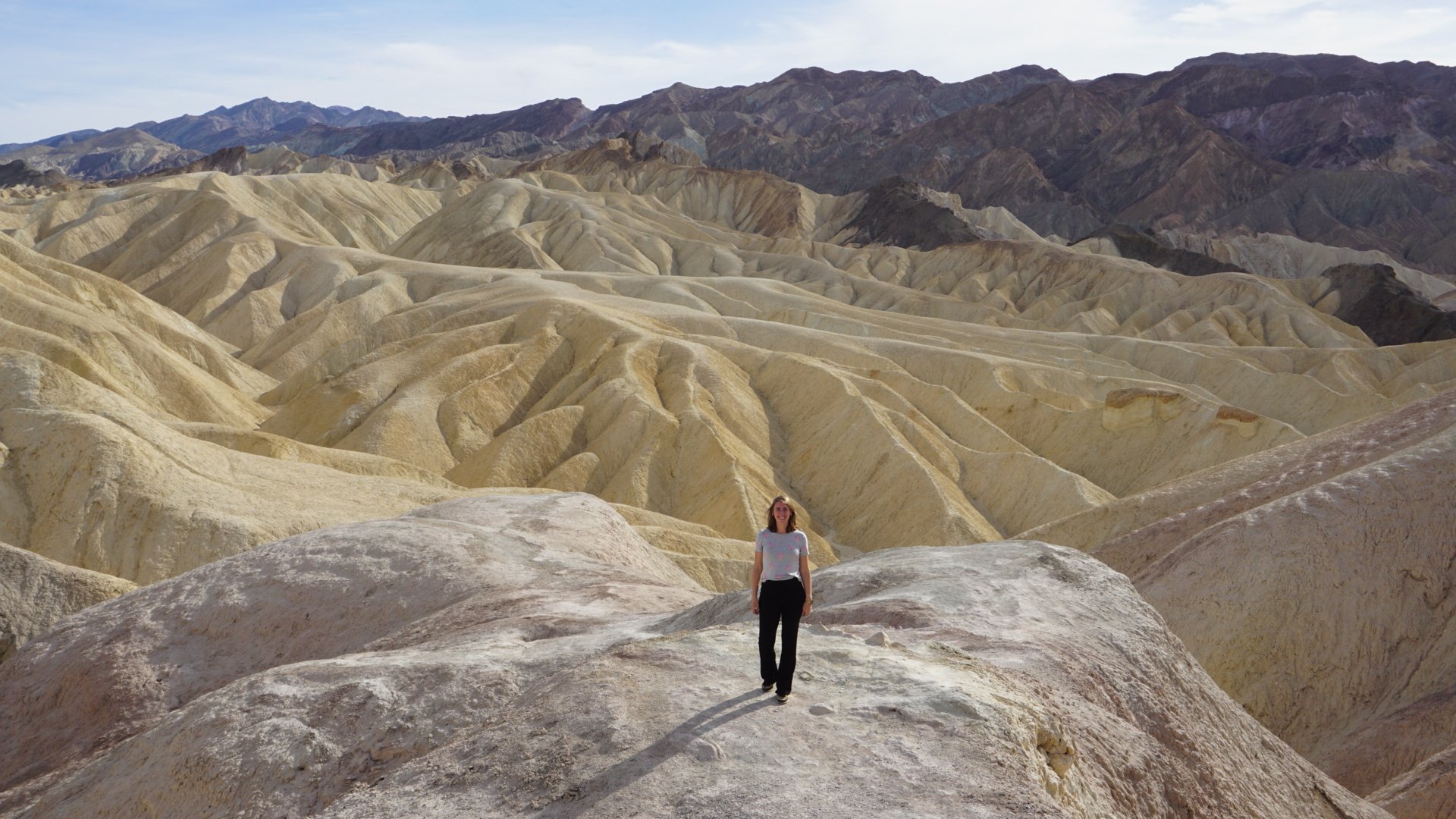 Death Valley bestaat voornamelijk uit een rotsachtig woestijnlandschap van verschillende kleuren, wat zich goed laat zien bij het Zabriskie uitzichtpunt, waar diverse grondstoffen gewonnen werden.