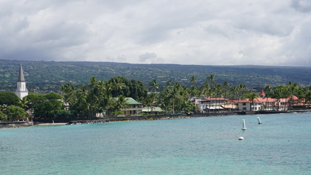 We komen aan in Kona aan de westkust, het meest toeristische stadje van het eiland, met wat winkels en restaurantjes langs de kust. Het centrum bestaat uit één straat dus hebben we het ook al snel weer gezien.