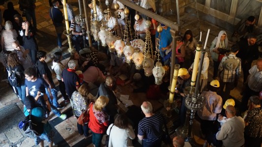 Heilige Grafkerk, marmeren steen bij plaats van balsemen Jezus Geplaatst door footsteps abroad on 17 april 201717 april 2017