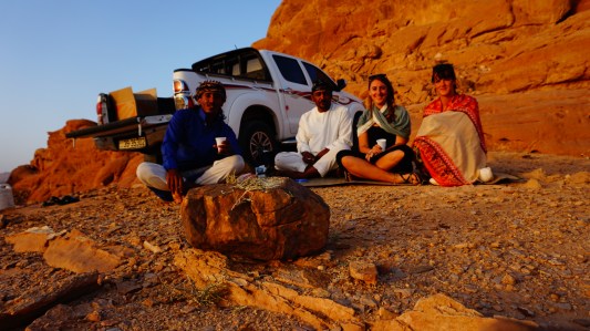 Wadi Rum, thee drinken bij zonsondergang met Ali en Abdullah Geplaatst door footsteps abroad on 25 april 201725 april 2017