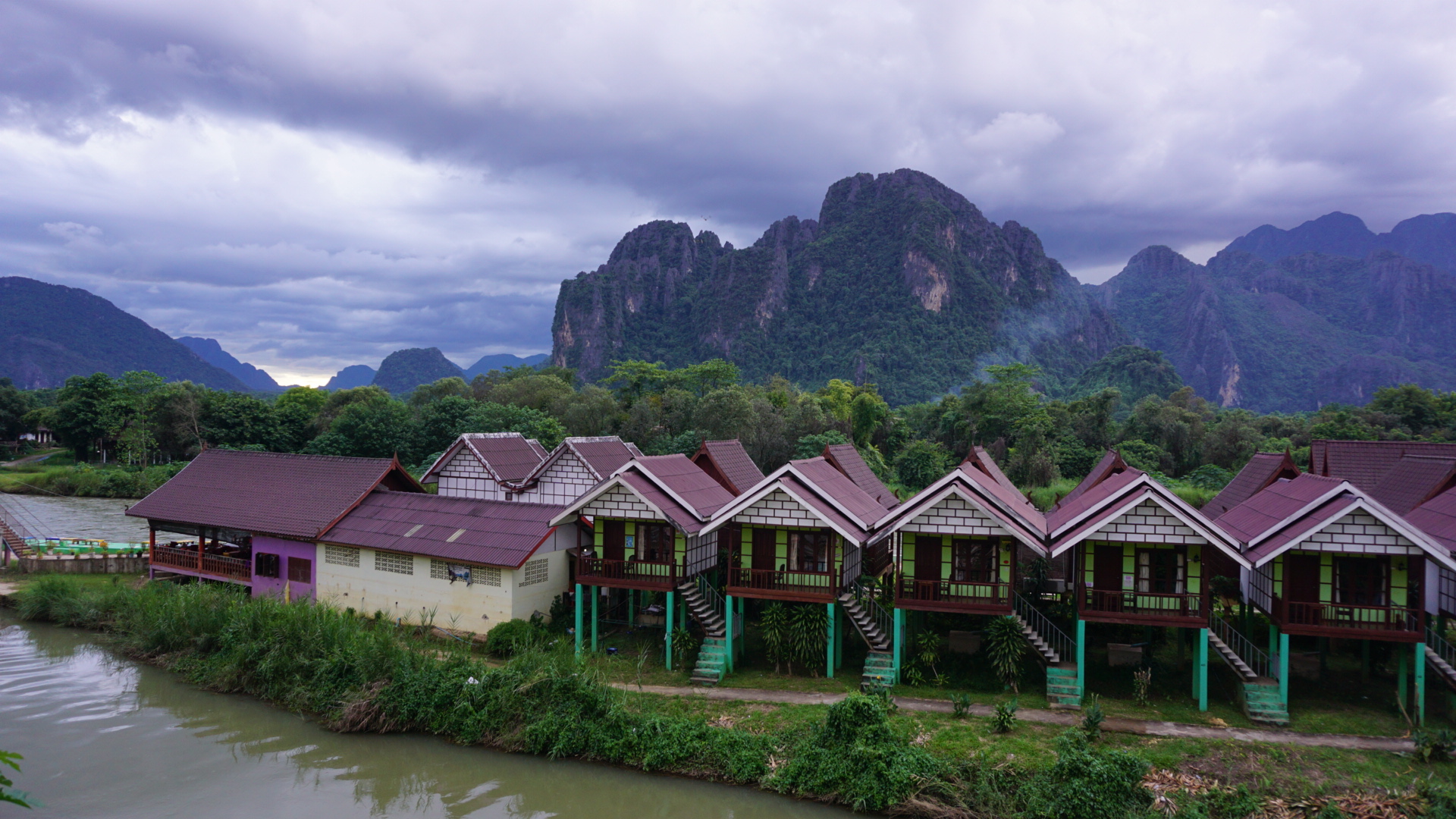 Uitzicht vanaf ’t centrum in Vang Vieng