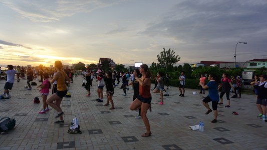 Open air aerobics class