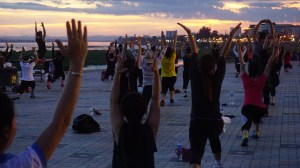 Open air aerobics class